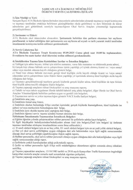 Öğrenci Servis Çalıştırma İşi İlanı